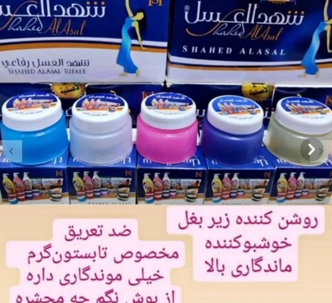 شهد العسل SHAHED ALASAL یک نوع مام یا کرم کاملا عربی، گیاهی و سنتی است که سالهاست در کشورهای عربی برای رفع بوی بدن، روشن سازی زیر بغل و لطافت پوست استفاده میشه. این محصول به صورت مام کرمی بر پایه عصاره طبیعی عسل، گلیسیرین، روغن های گیاهی و مواد ضد تعریق طببیعی ساخته شده است